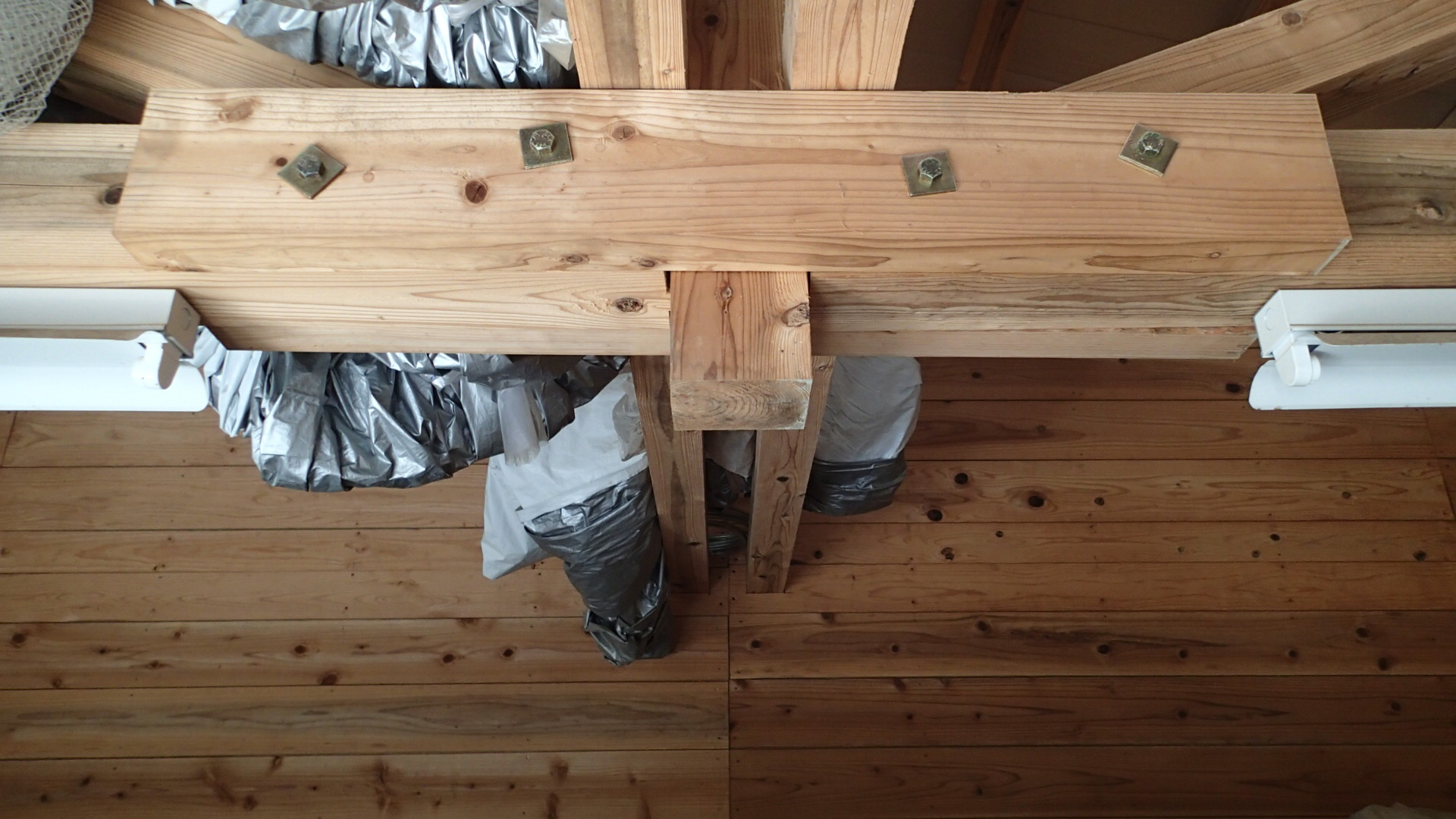 暖房機の煙突をセットして準備完了