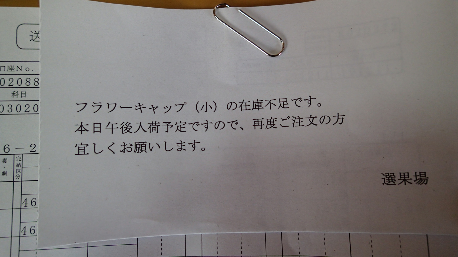 そして、次の日の朝選花場に出荷箱を下ろし、段ボールとフラワーキャップを積んで帰ろうとしたら、フラワーキャップがない!