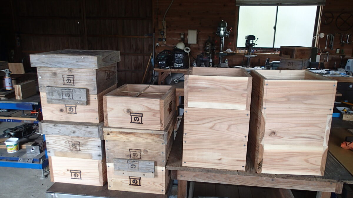 ぼくの作業場には新しく作った待ち箱がいくつかあります。焼印待ちの継箱です。もう、いくつかの待ち箱は、「ここに入居してね!」って場所に設置してあります。