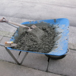 と書けば簡単ですが砂利を入れて本格的なコンクリートを作ったのは初めて、今回は一輪車をトロ箱の代用で砂利、砂、セメントを混ぜたのですが砂利20kgには少し小さく混ぜるのに苦労しました。