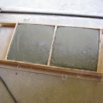 大きさはブロックを二つ並べた形が安定して良さそうだったので39cm×39cmで二個できるように型枠を作りそれにコンクリートを流し込んで終了。