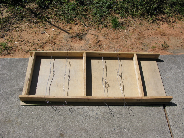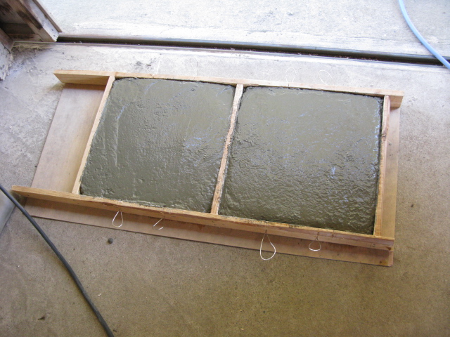 大きさはブロックを二つ並べた形が安定して良さそうだったので39cm×39cmで二個できるように型枠を作りそれにコンクリートを流し込んで終了。