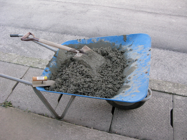 と書けば簡単ですが砂利を入れて本格的なコンクリートを作ったのは初めて、今回は一輪車をトロ箱の代用で砂利、砂、セメントを混ぜたのですが砂利20kgには少し小さく混ぜるのに苦労しました。