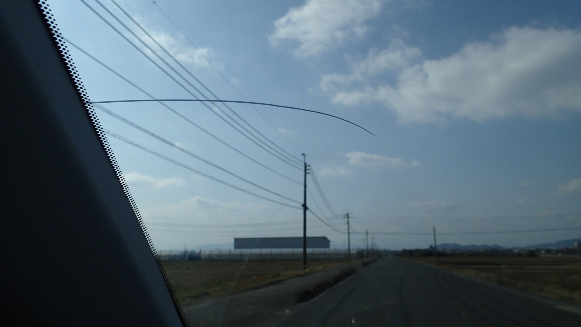 それが跳ね返ってきて、フロントガラスに、ピシィ!、そして石はどこかに飛んでゆきました。