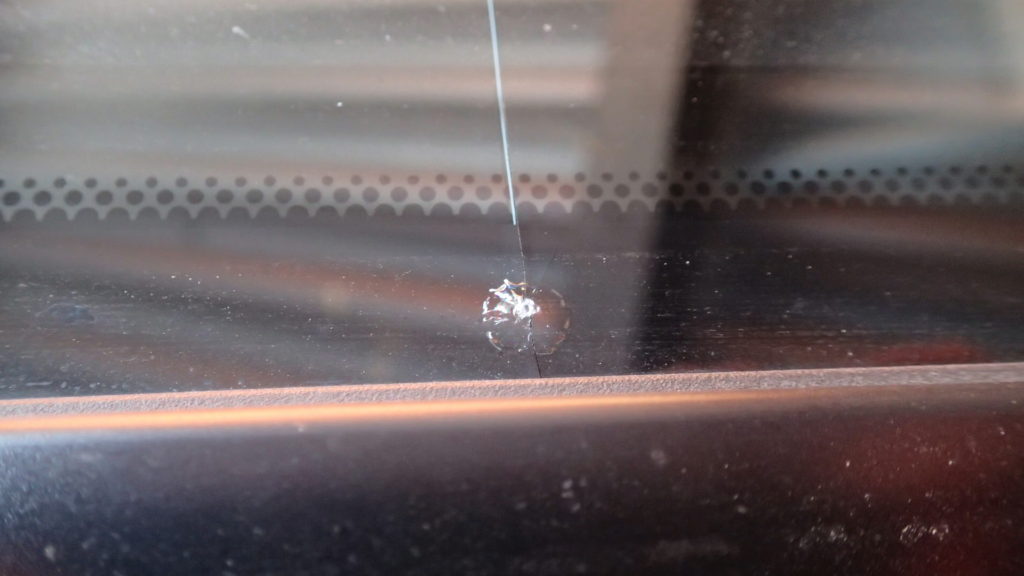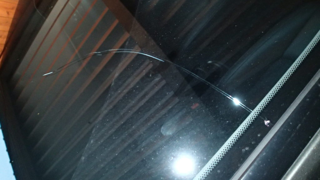 そして、ビィビィビィってフロントガラスにひびが走り、最初5cmぐらい、それから少しずつ延びてゆきました。