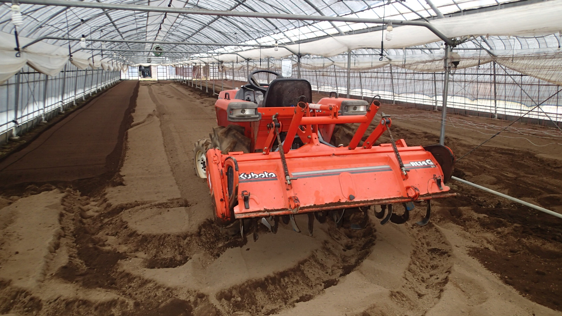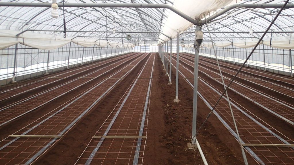 本日は定植準備なり、天気は雨なれどハウスの中は関係なし、
