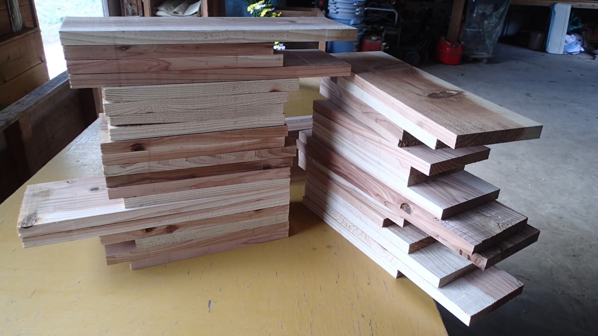 板の長さが違うのは、製材所で端切れをもらってきたので、まちまちなのです。