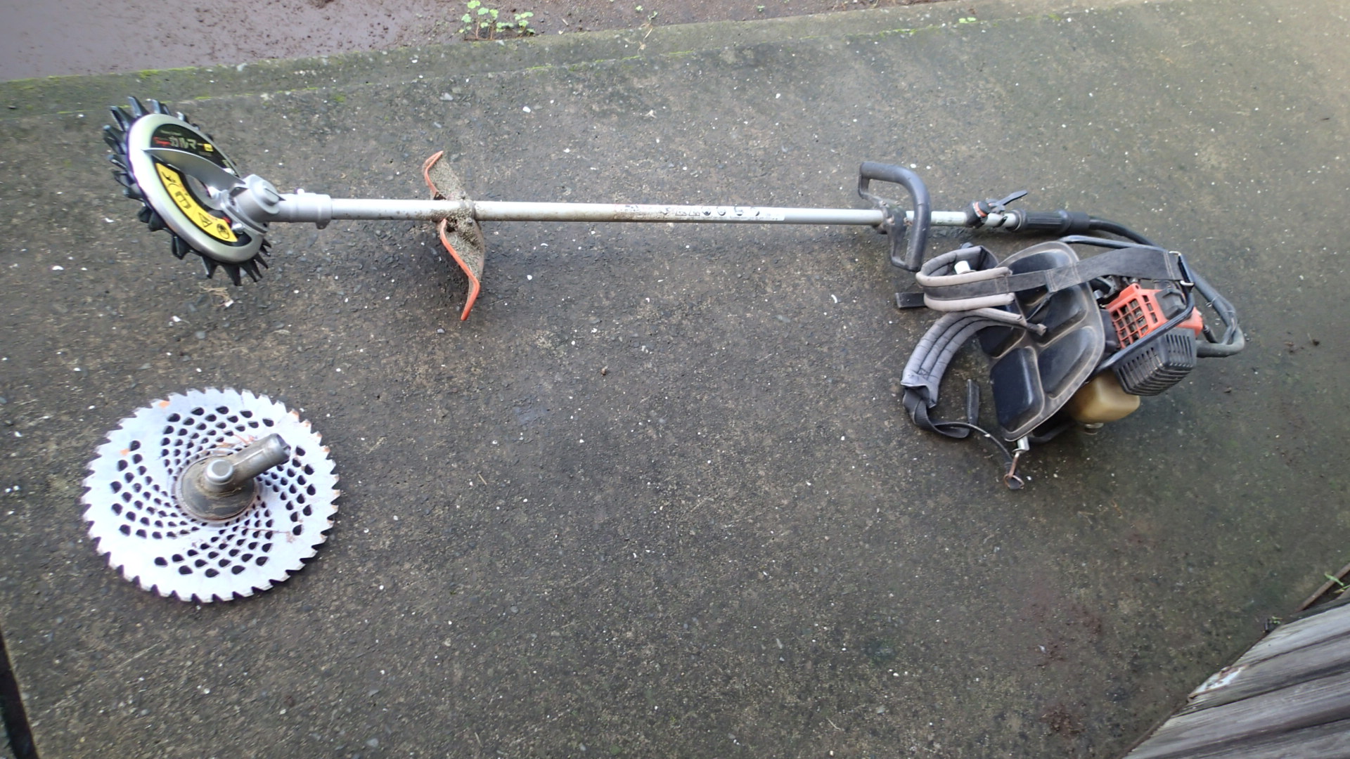 我が家の刈り払い機は2台、ヒモ用とチップ用、