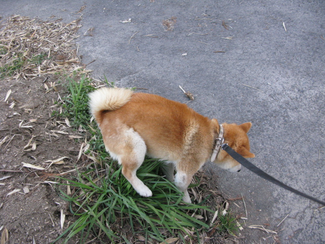 タローは田舎で良かったね! 町じゃね、散歩も自由に出来ないんだよ。 看板が出ていてね、 ”犬の散歩禁止”。 たぶん、マナーの悪い飼い主が犬のフンを片づけないでそのまま放置しているんだね。 タローは道の真ん中でウンチすることないけど、 おじさんが気をつけるね。