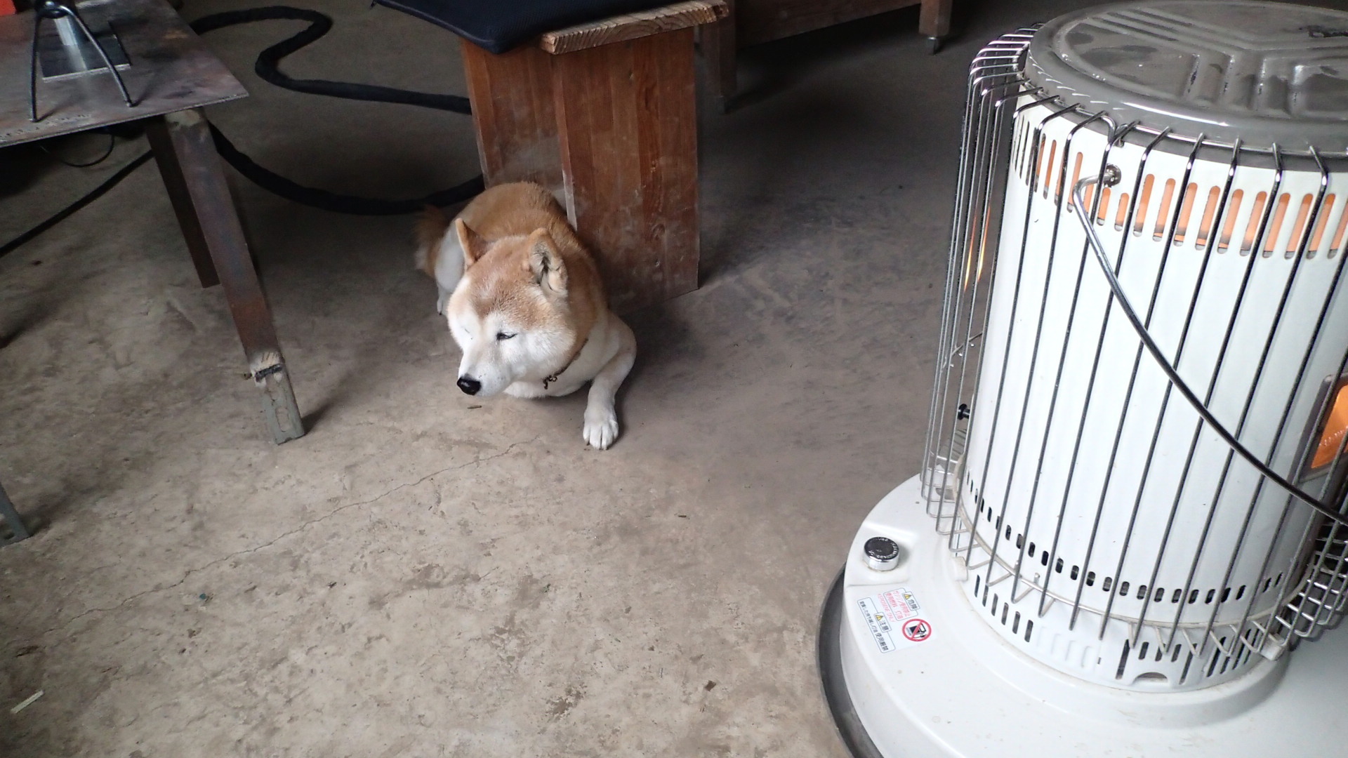 あまりにも寒そうなので、石油ストーブつけてあげたわけです。