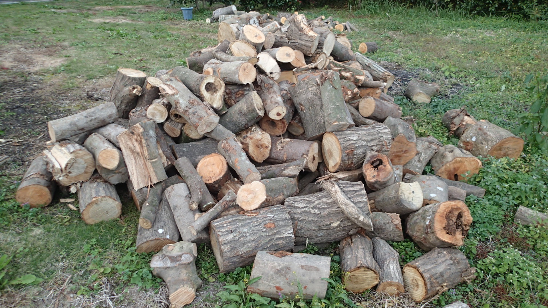 午前中に雑木の玉切り、また軽トラに2台分運んできました。