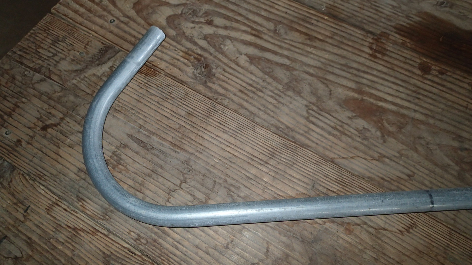 へー結構きれいに曲がるもんです。パイプを曲げる時は中に砂を入れたり、火で炙ったりするもんですが、φ19ぐらいなら問題なく曲がります。