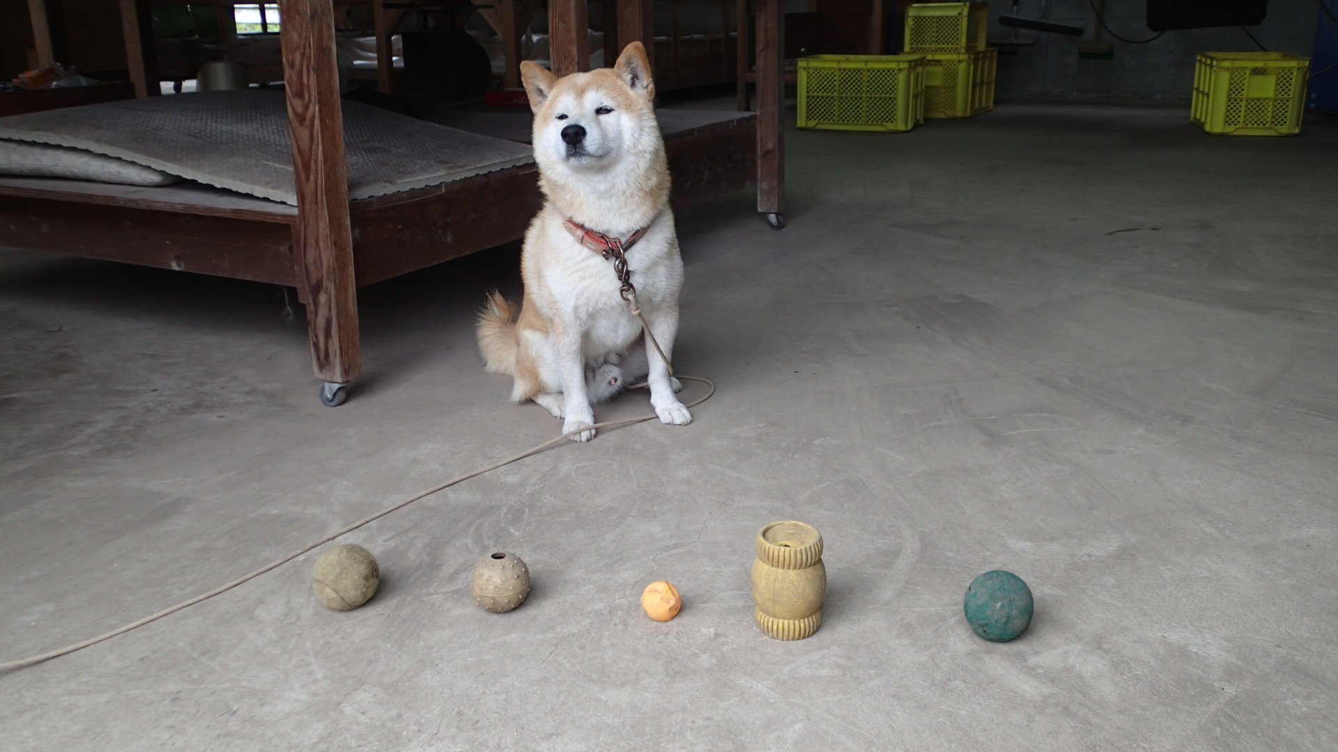 もう使われないピンポン玉は犬のもんです。