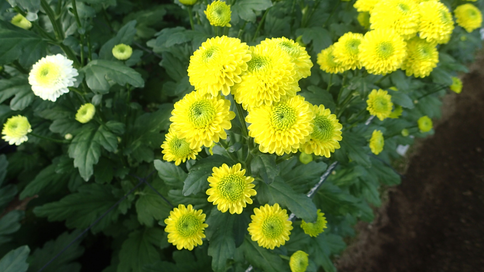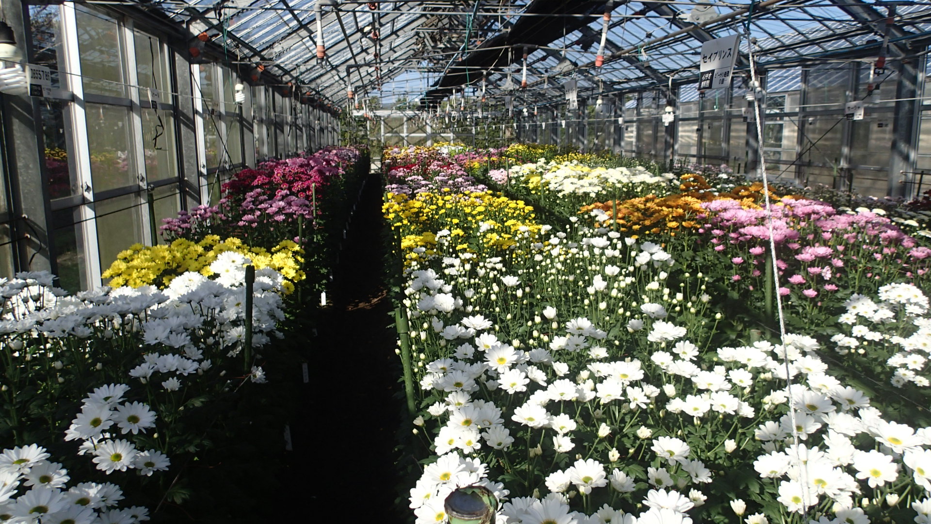 そこで、秋スプレーギク栽培研修会があり、県の新品種や、種苗会社の新品種の花をみて、次の導入品種はないか検討してきました。