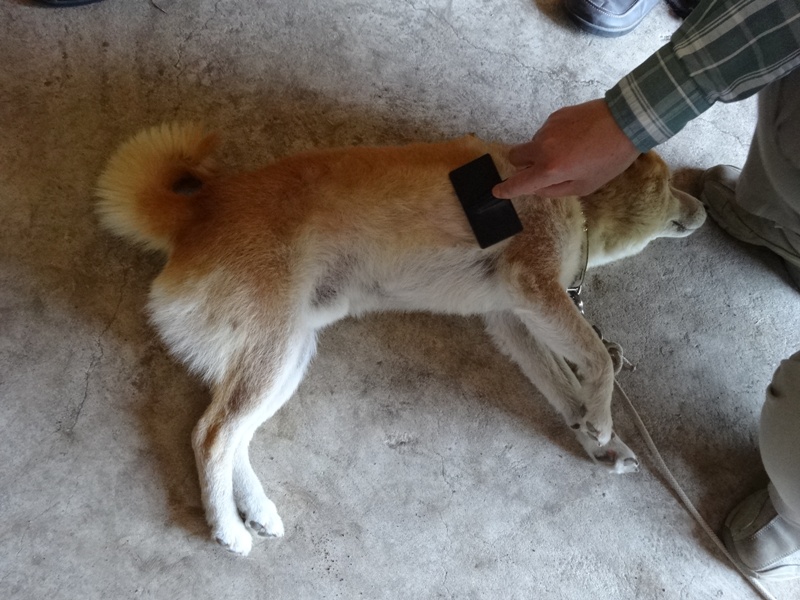 犬を捕まえて、ブラッシングします。
