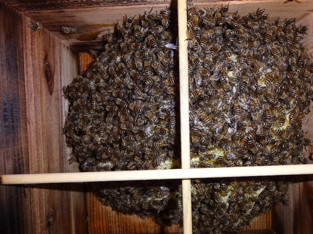 分蜂シーズン終わりに入った群、小さいです。 これから大きくなるのかな~! 蜂さん頑張ってね!!