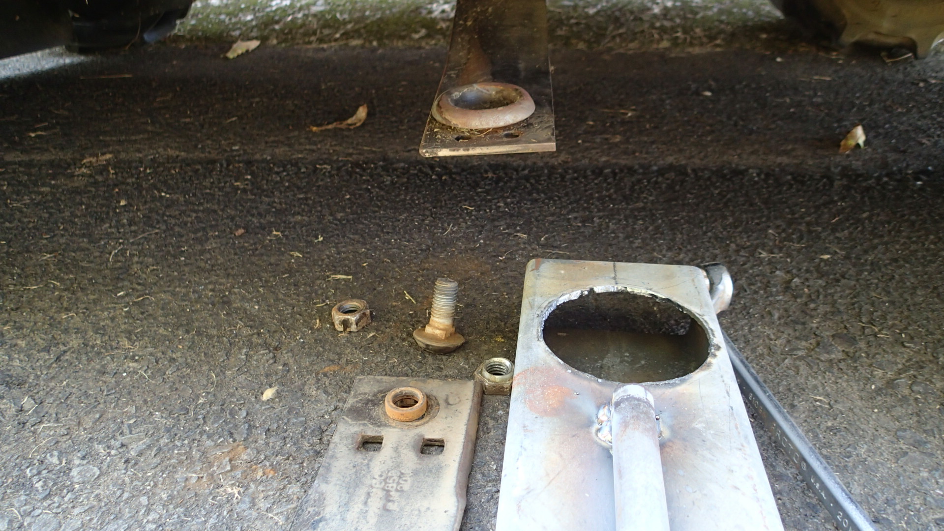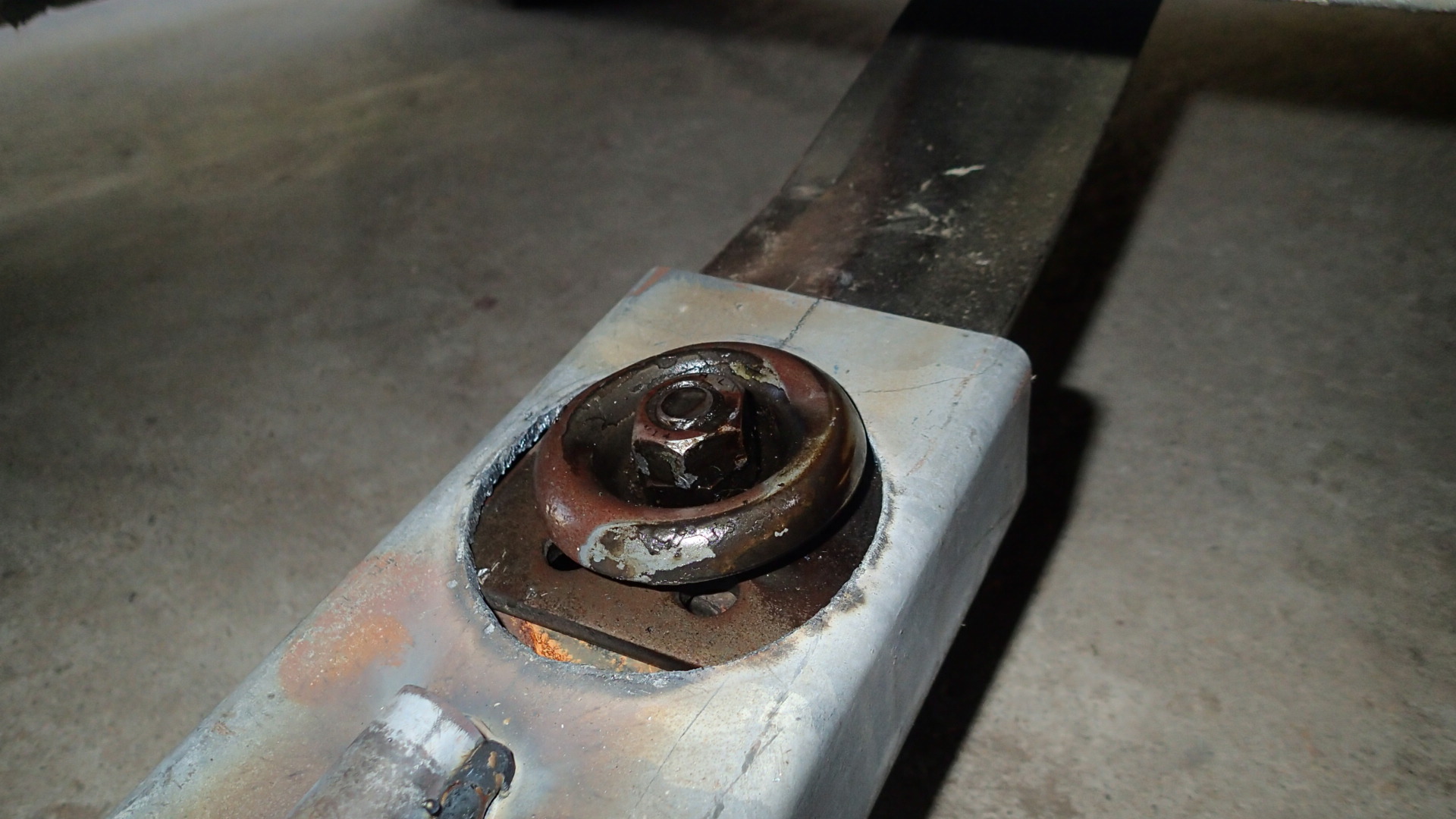 そして、いざはまって足裏で治具の棒を押すようにしてボルトにレンチをはめてレンチは短いのでそのレンチに丸パイプを被し(長くして)やっとこさ回りました。