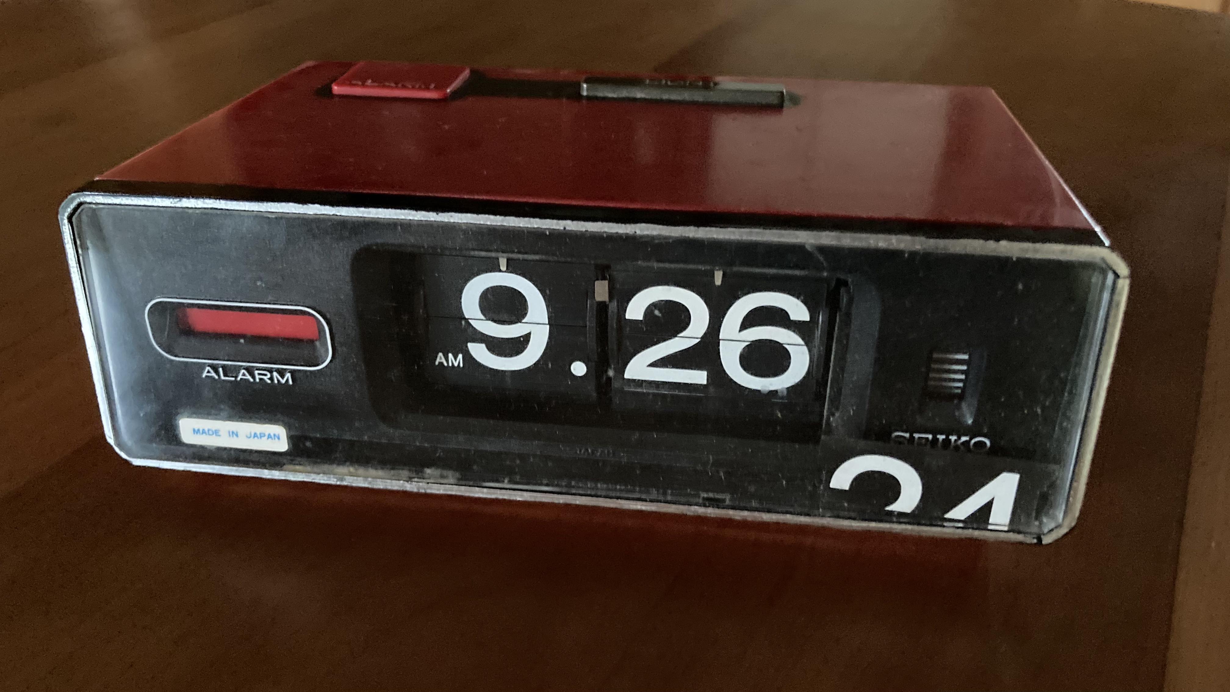 目覚まし機能も付いている愛用の時計は、ちょっと大きくて見やすいです。