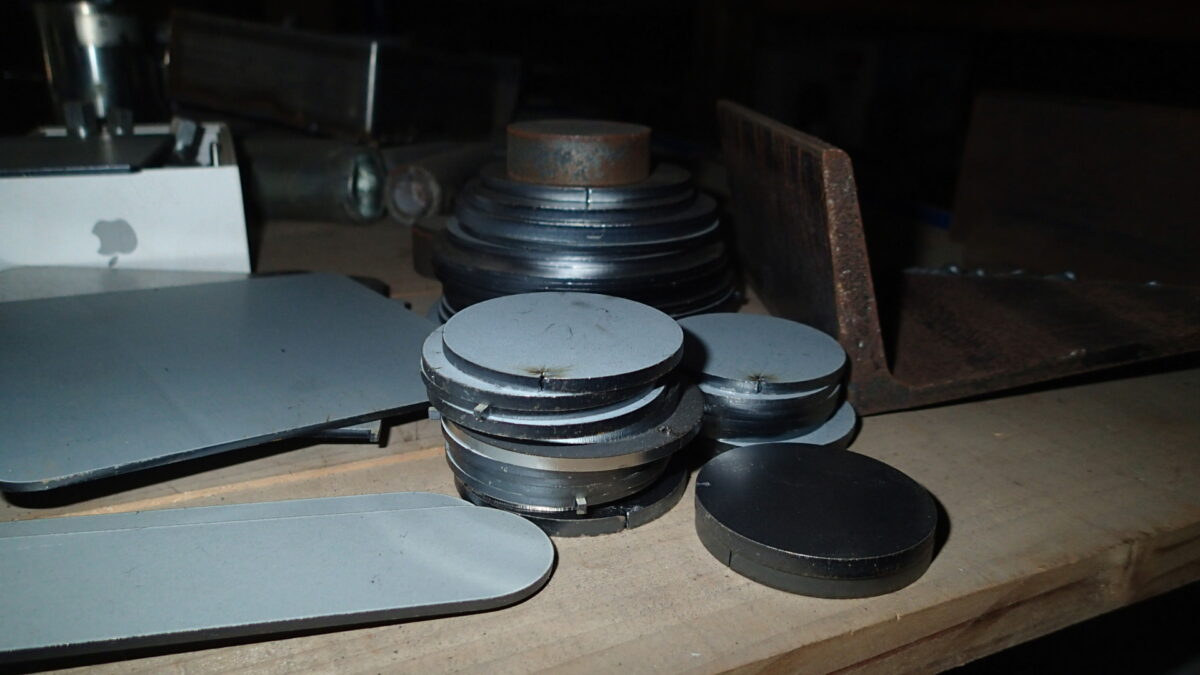煙突は作りたいリストの下の方にありました。しかし、少し前に丸く切った薄板鉄板をお土産にもらったのです。