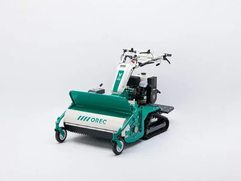 キャタピラー式ハンマーナイフモア(立って乗ることもできるタイプ)
