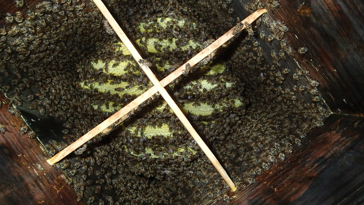 しばらく点検してなかったみつばちの巣箱を見てみました。