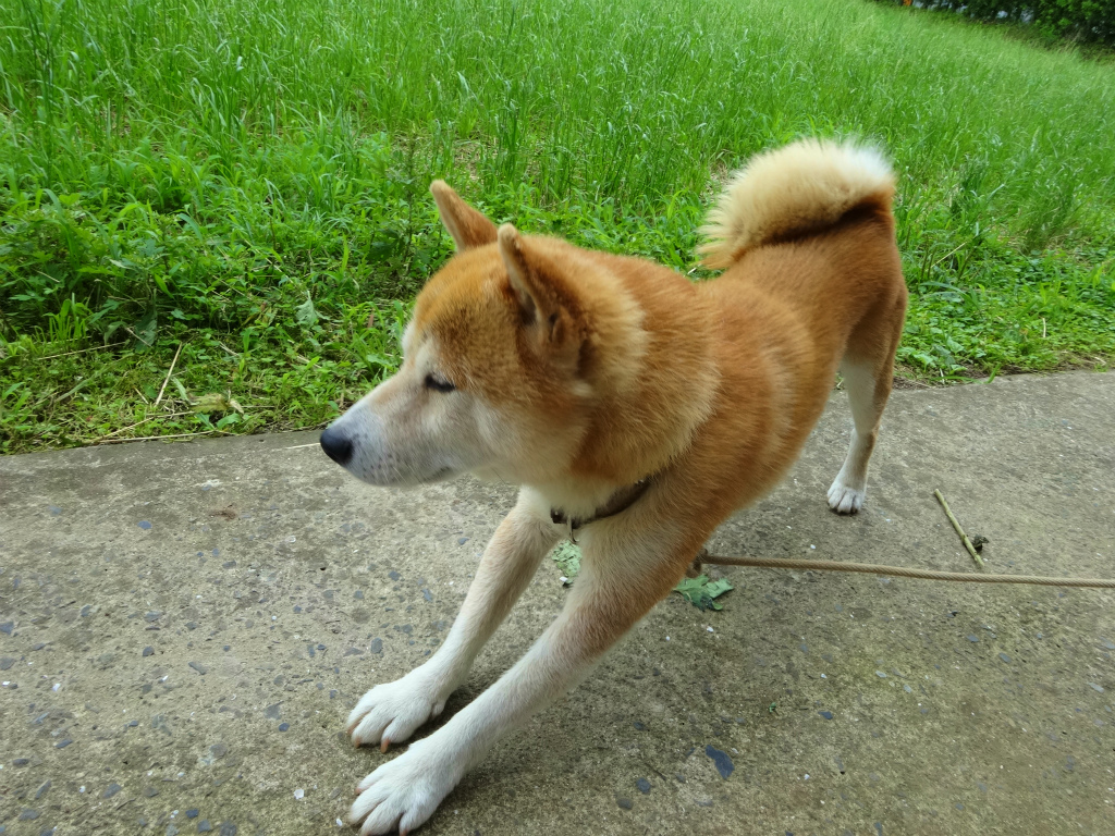 犬も屈伸運動しますよ~