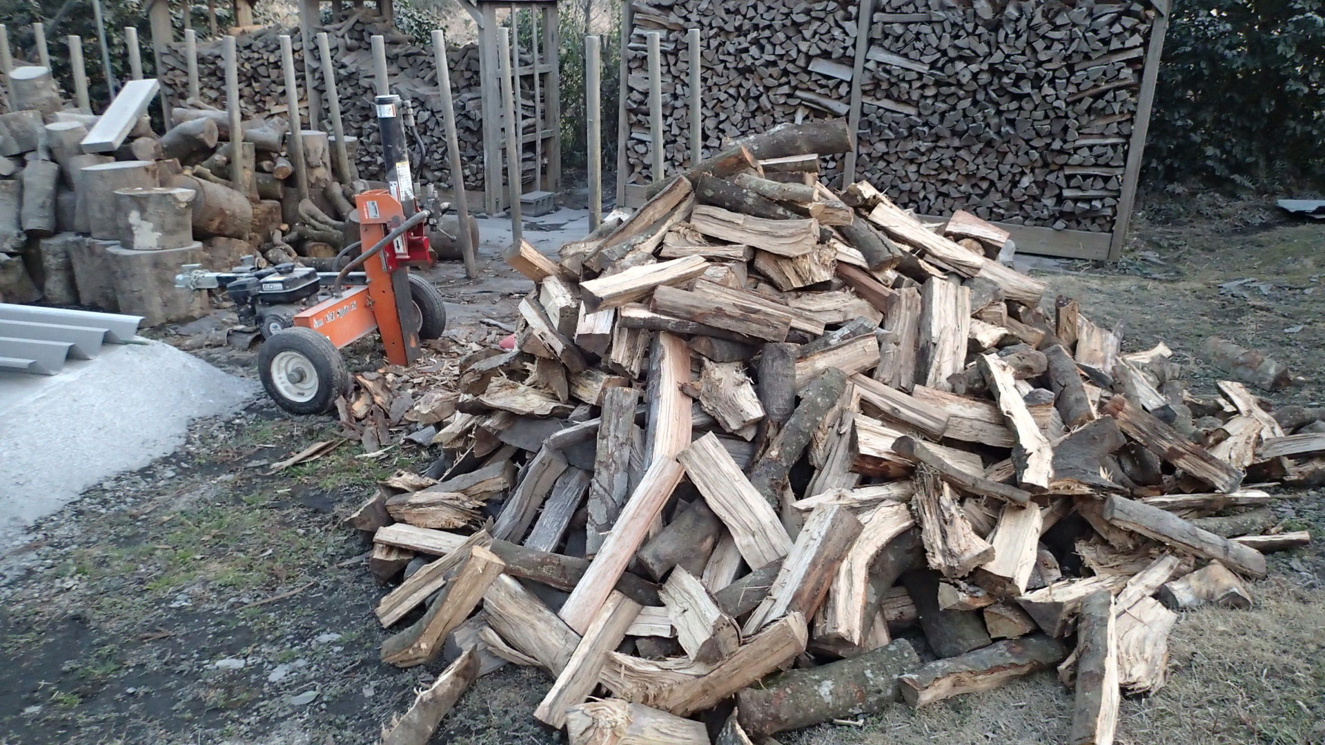 1. 奥様、薪割楽しんでおられますねー。私もしなければと思いながらそのままになっています。薪小屋がありませんので、薪小屋がなくても乾燥できる方法を思案中です。