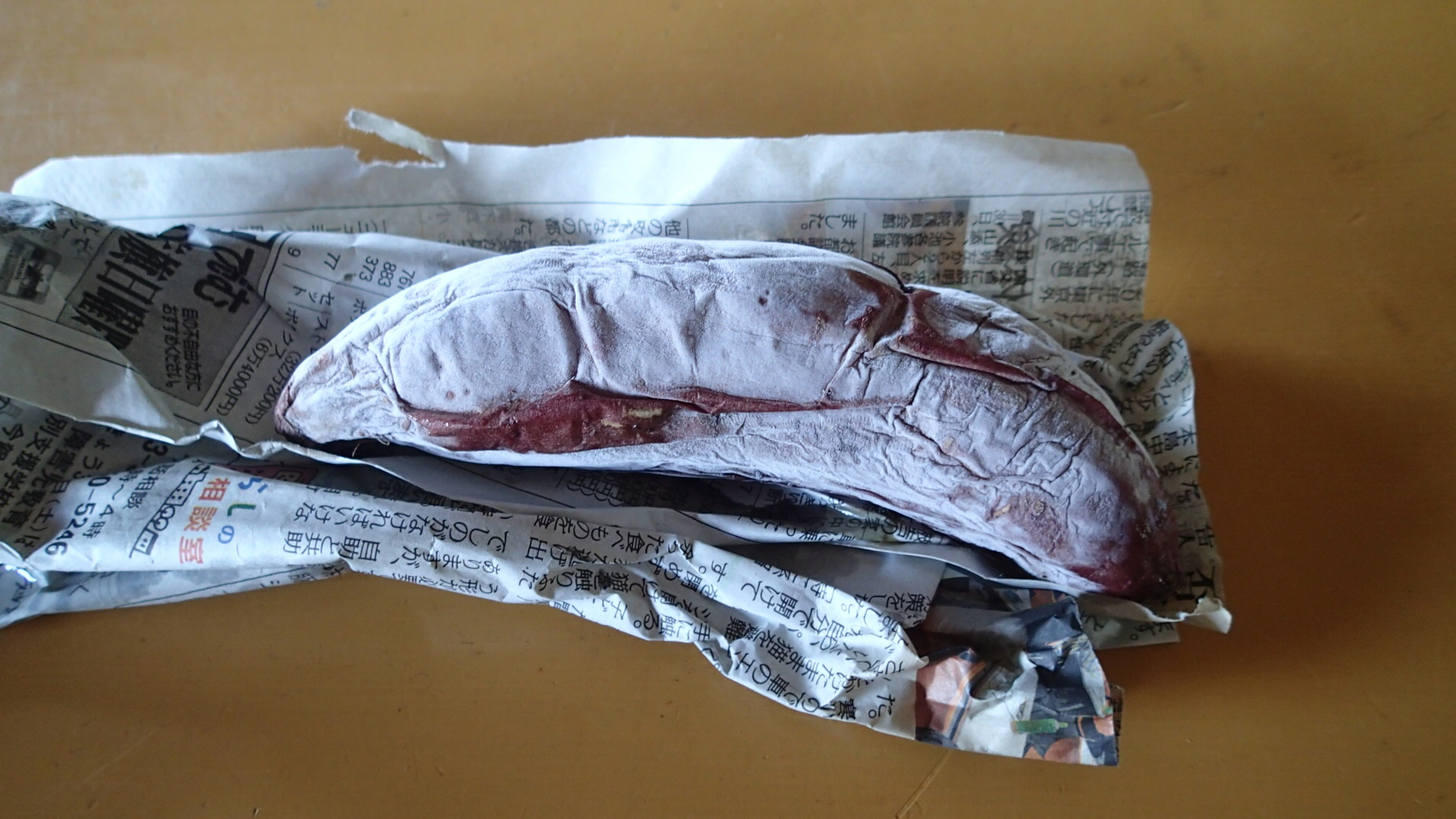 昨年採れたサツマイモを今年のはじめに薪ストーブで焼いて、それを冷凍しました。それをこの夏、猛暑の夏、冷凍庫から出して食べてます。