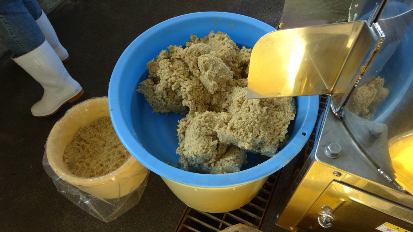 一晩湿しておいた大豆、蒸気圧力をかけて柔らかくして、さらにミンチにして、