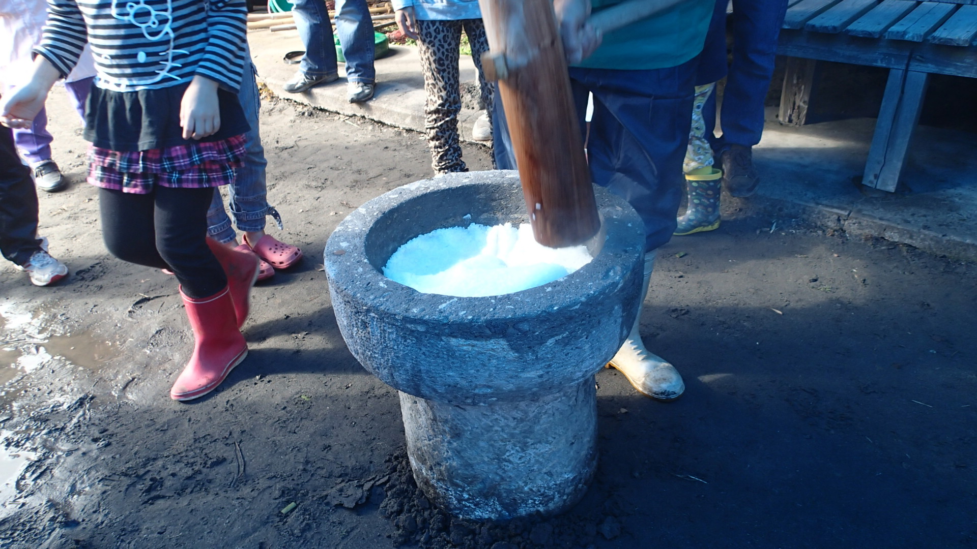 最近、臼と杵で餅つきをするなんてことがないので、子ども達にはよい経験になったのではないでしょうか。