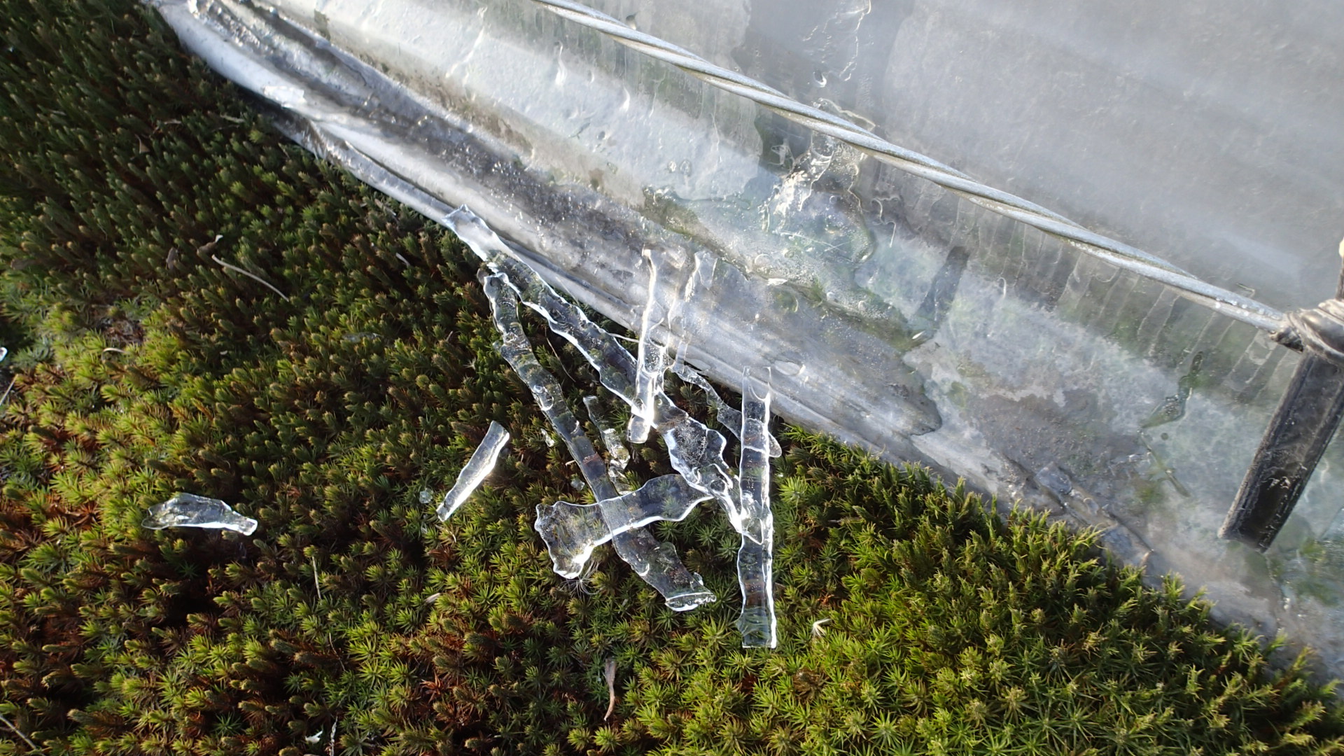 ハウスは暖房してあるので、少しの氷です。