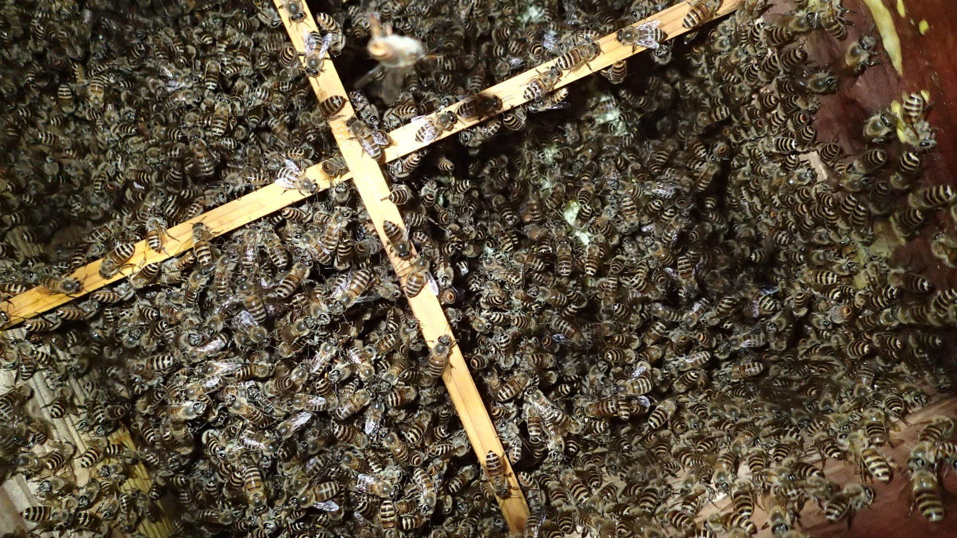 まっ、今年の採蜜はむつかしいですが、来年春の分蜂を期待したいと思います。