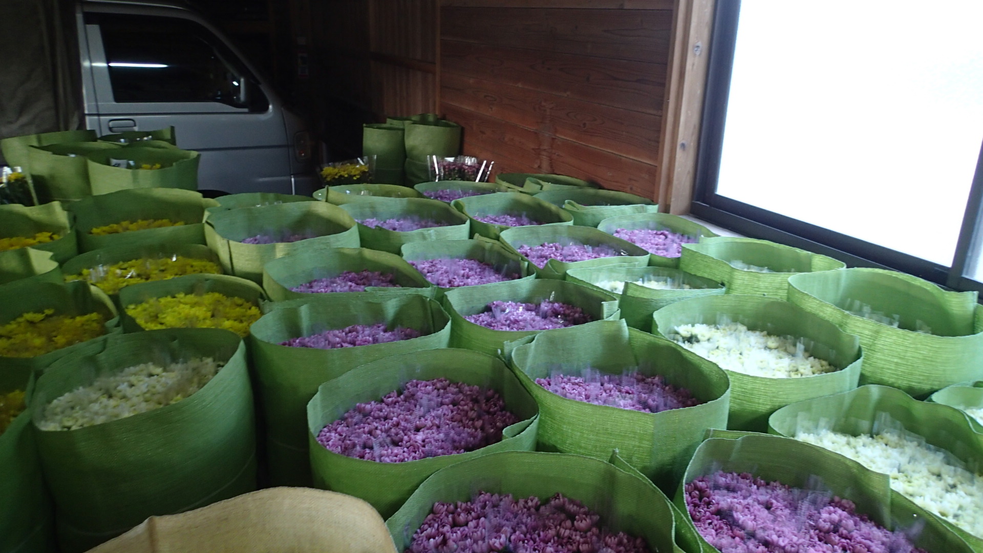 花農家の作業場に行くと、ラジオの声が聞こえてくる時が多いですが、時には大きな歌声が聞こえてきます。