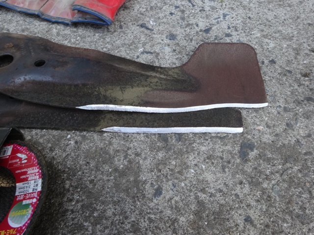 昨年使ってからメンテしてなかったので、せめて刃ぐらい研がなきゃと、グラインダーで”ジィージィー?”しました。