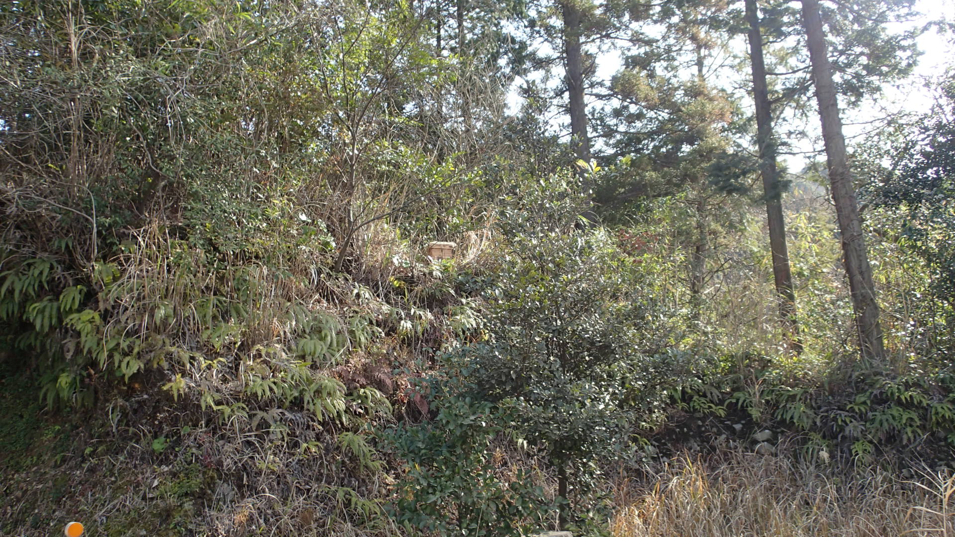 巣箱前面がちょっとした崖、横にはそこそこの木があります。
