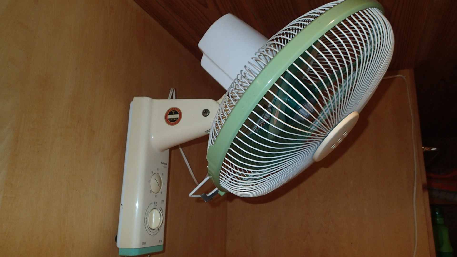ぼくが独身時代から使っている壁掛け扇風機、ナショナルです。
