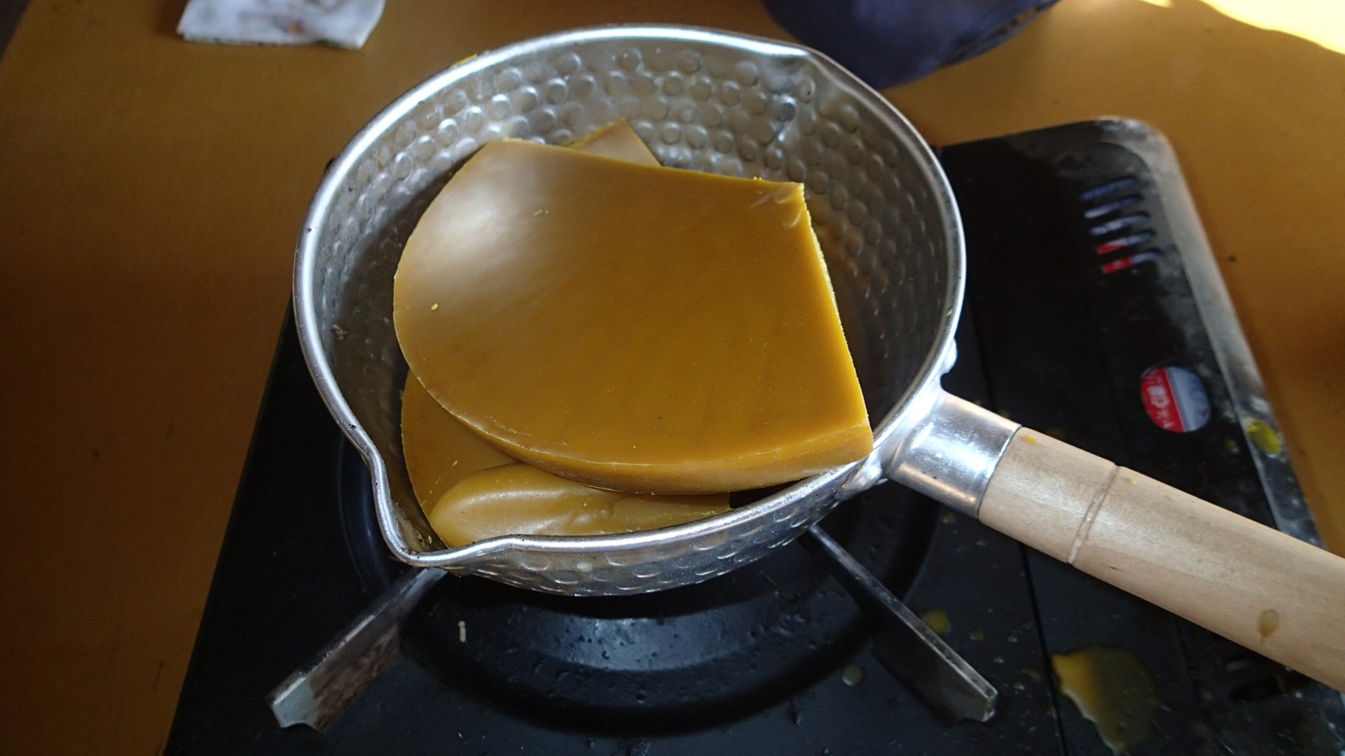 さて、昼から時間があったので、蜜蝋の精製を少し。