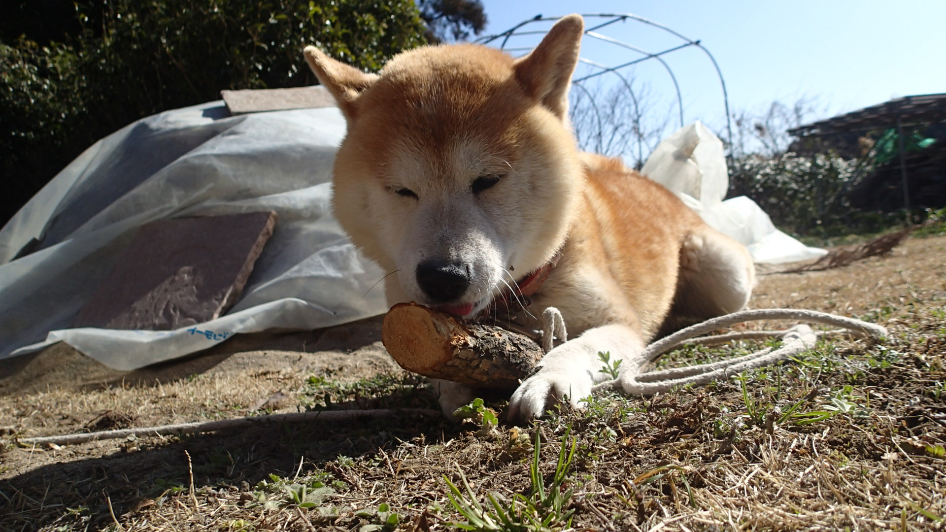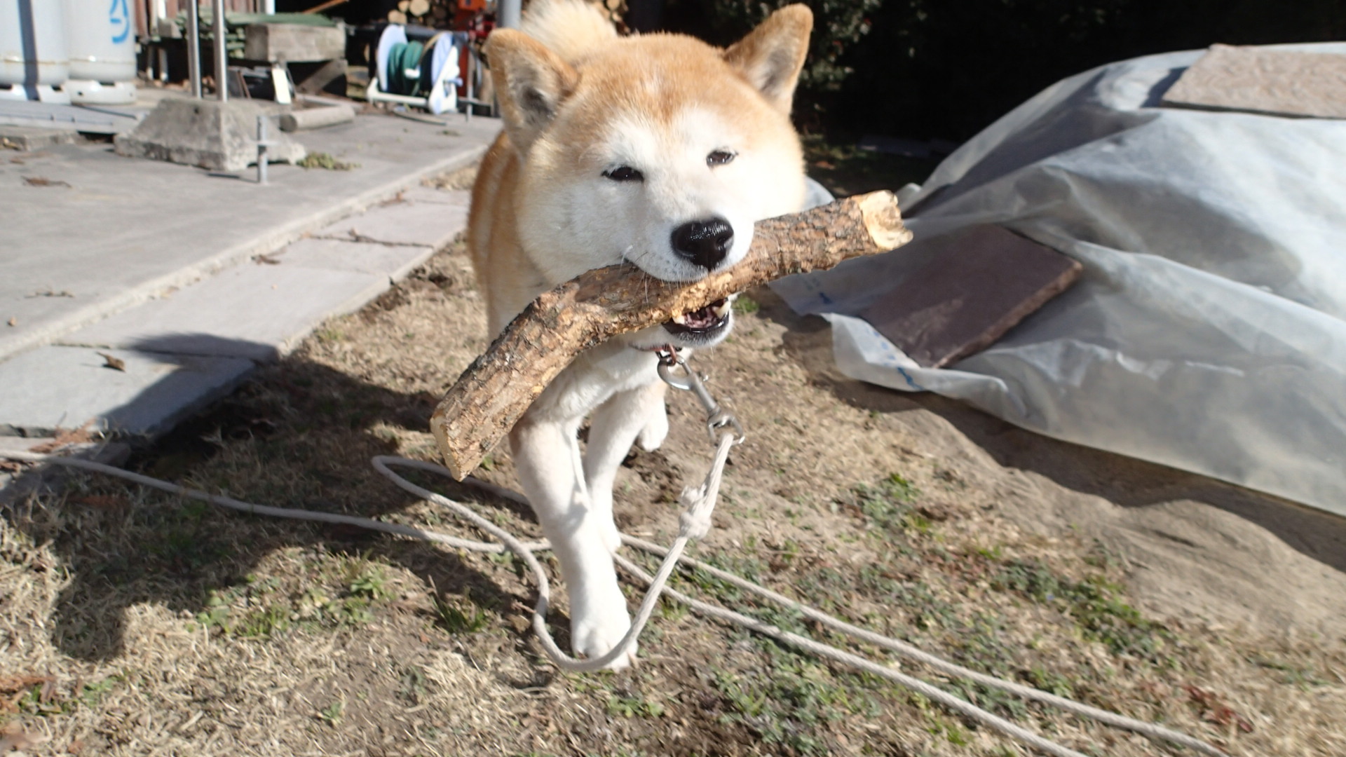 犬は薪割りの手伝いではなく”木っころ”遊びをしました。