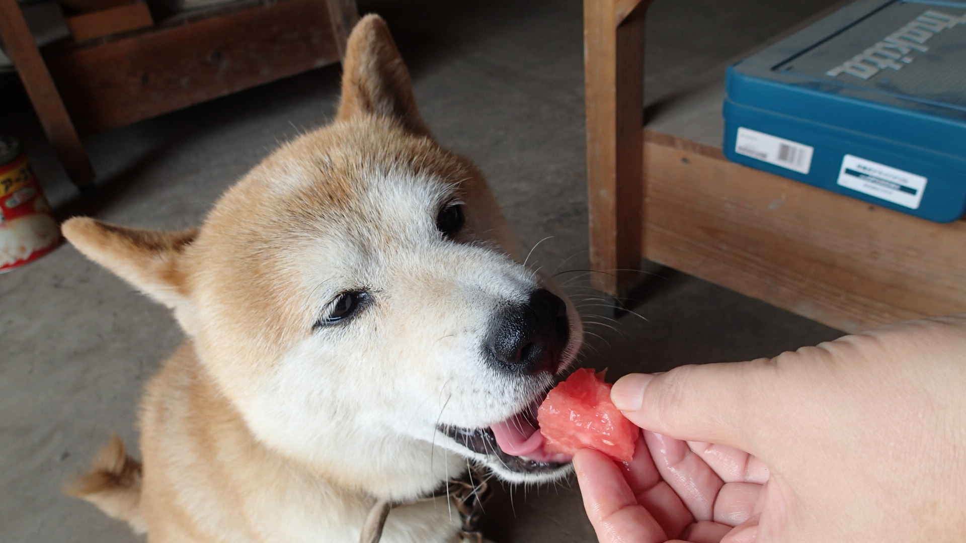 でも休憩はおじさんたちと鼻をそろえて、暑い夏はスイカが一番です。