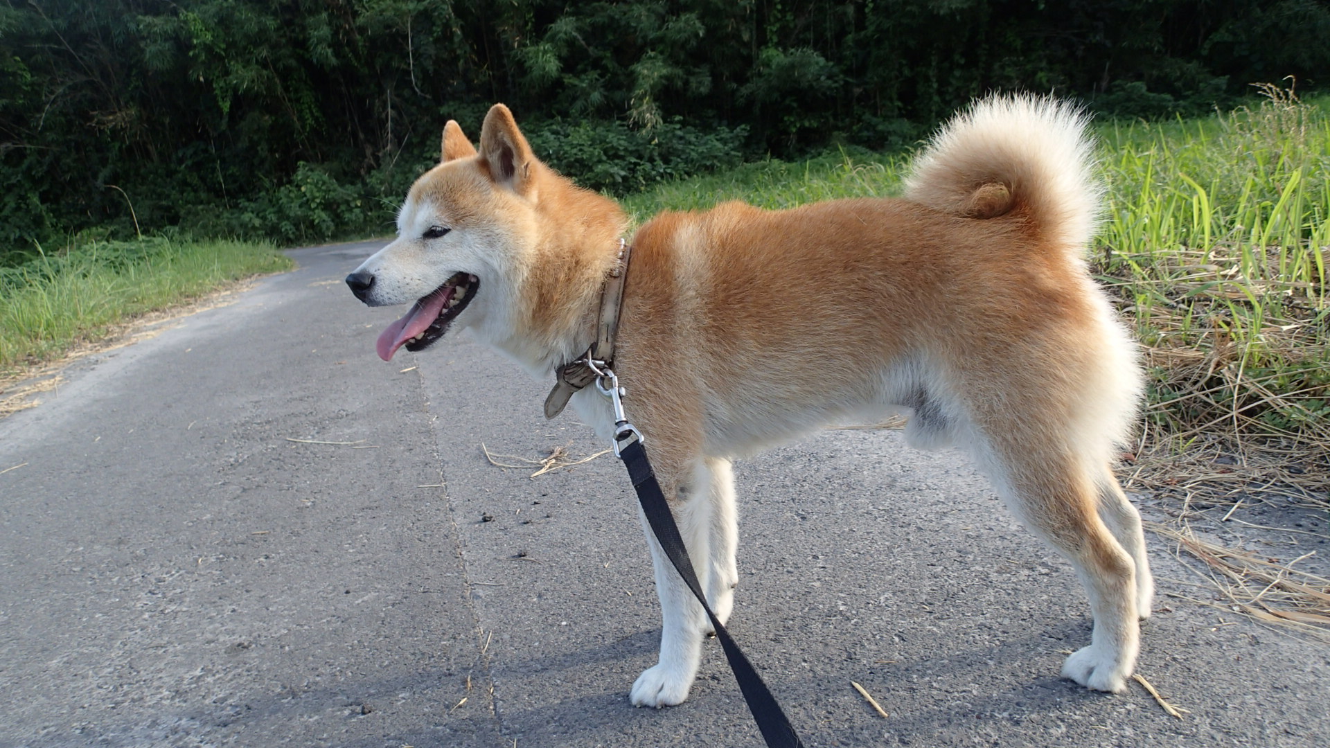さて、柴犬タロー暑さに負けないで飼い主孝行しています。