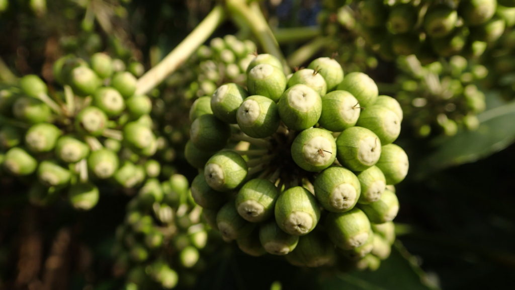 子どもの頃、ヤツデの実を投げっこして遊んでいました。