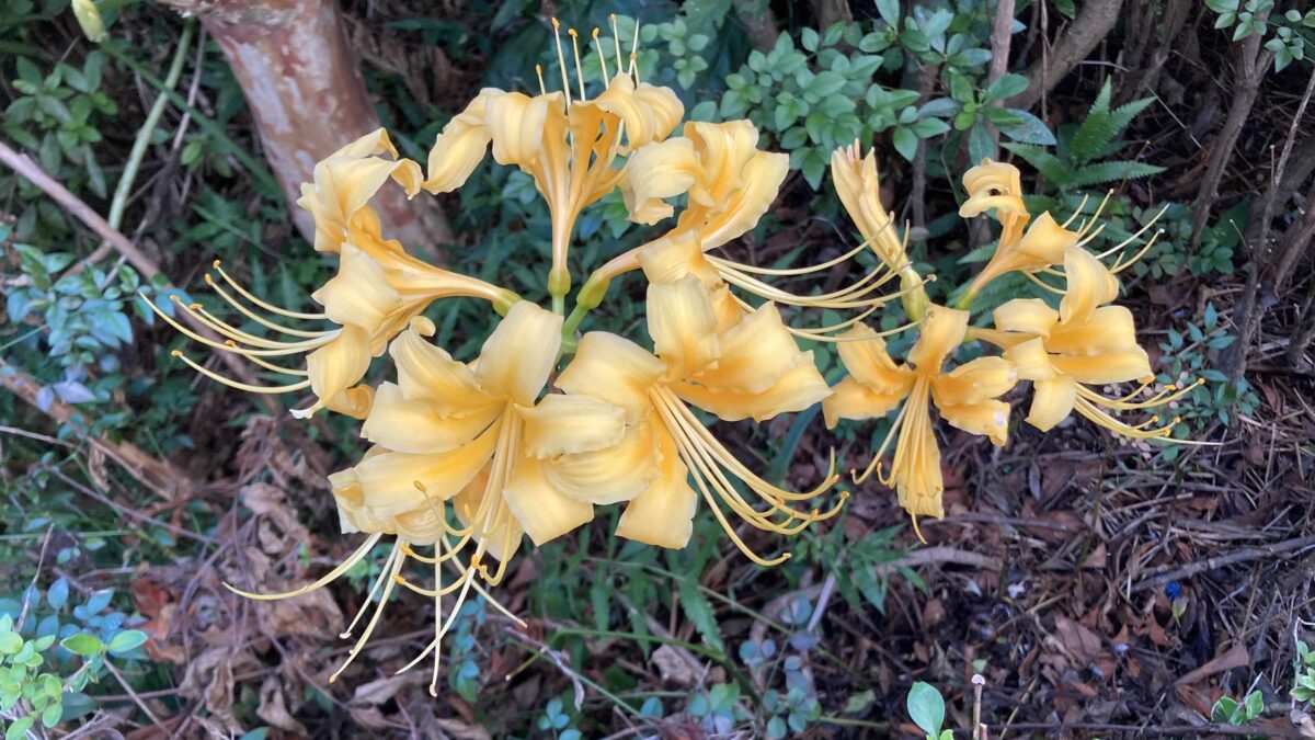 ぼくが小さい頃は赤い彼岸花しかなかったような記憶があるんですが、今は黄色白色もあるんですね。品種改良かな、赤は見慣れた色で黄色が目につきます。きれいです。