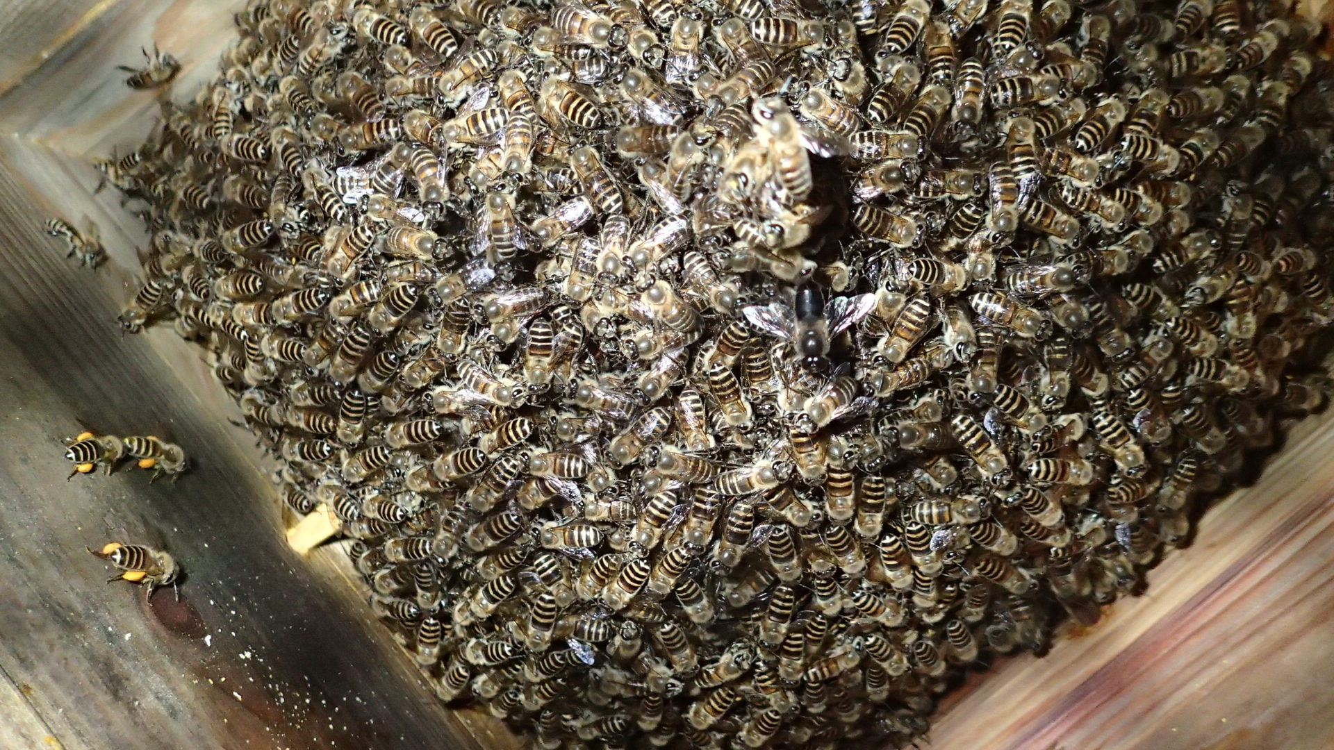 一群はオオスズメバチからしつこい攻撃を受けていたのか、みつばちが出ていません。