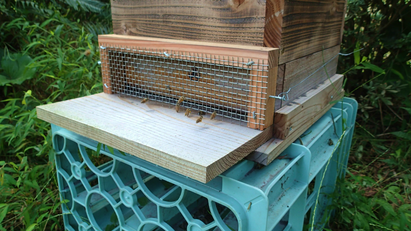 巣門ガードにみつばち達が苦戦しているのをみると可愛そうになります。一度外そうかなとも考えてしまします。