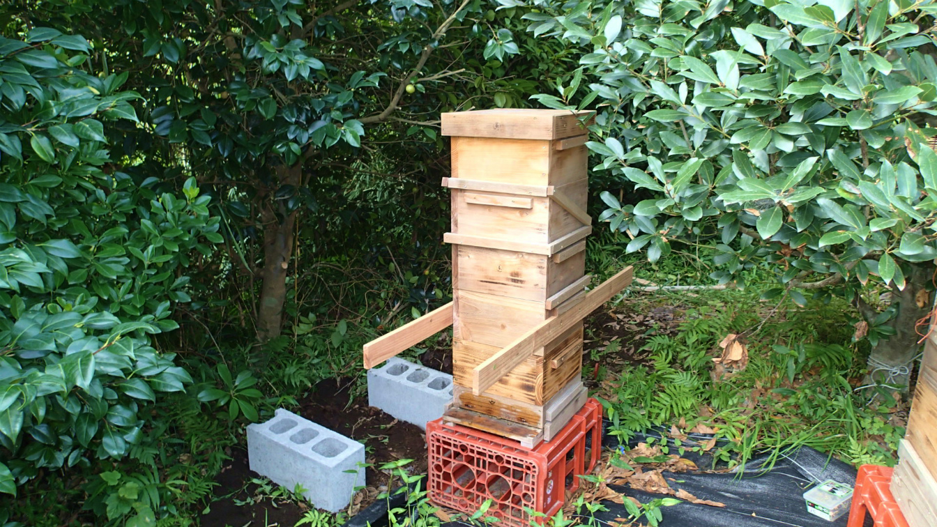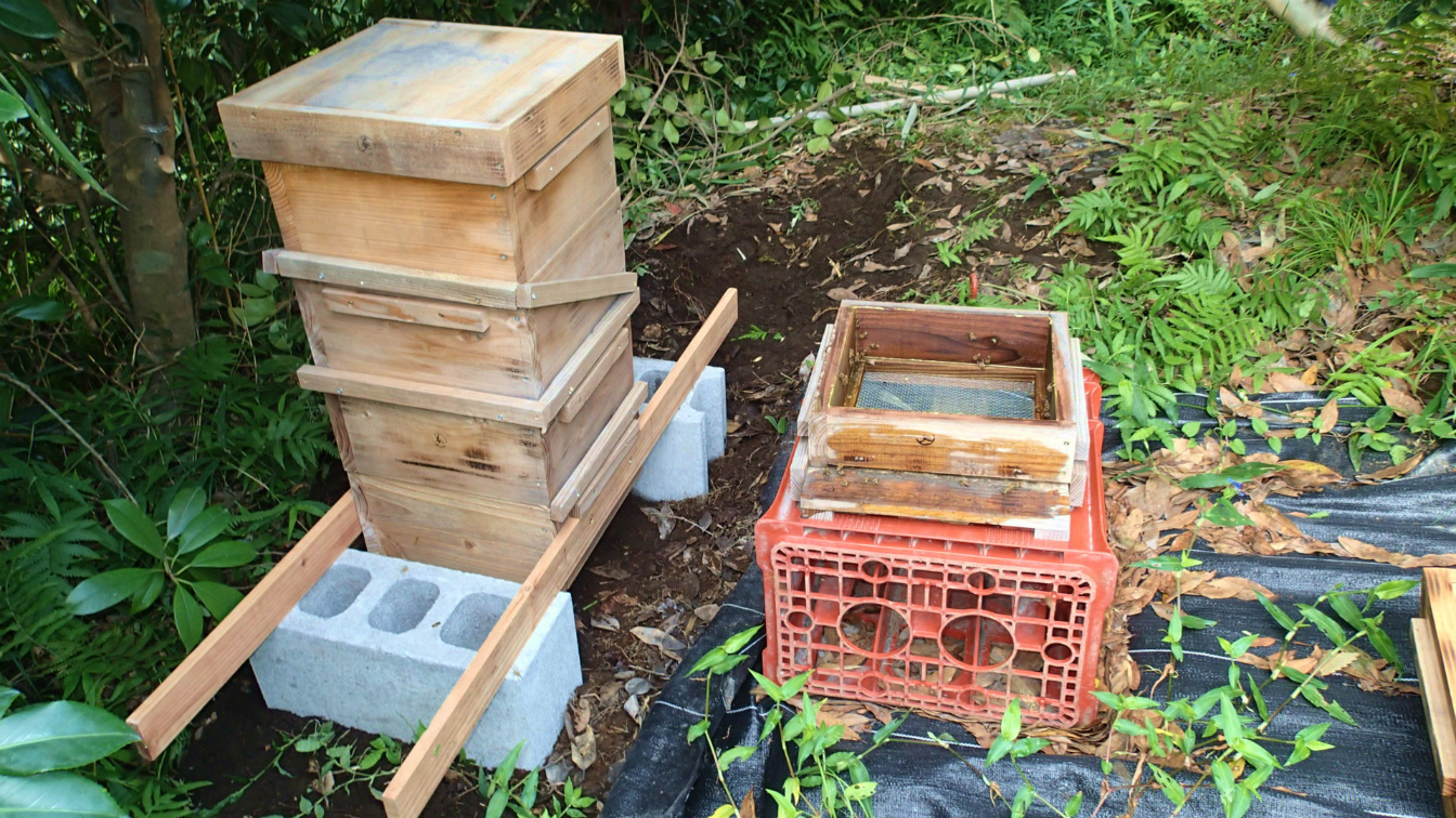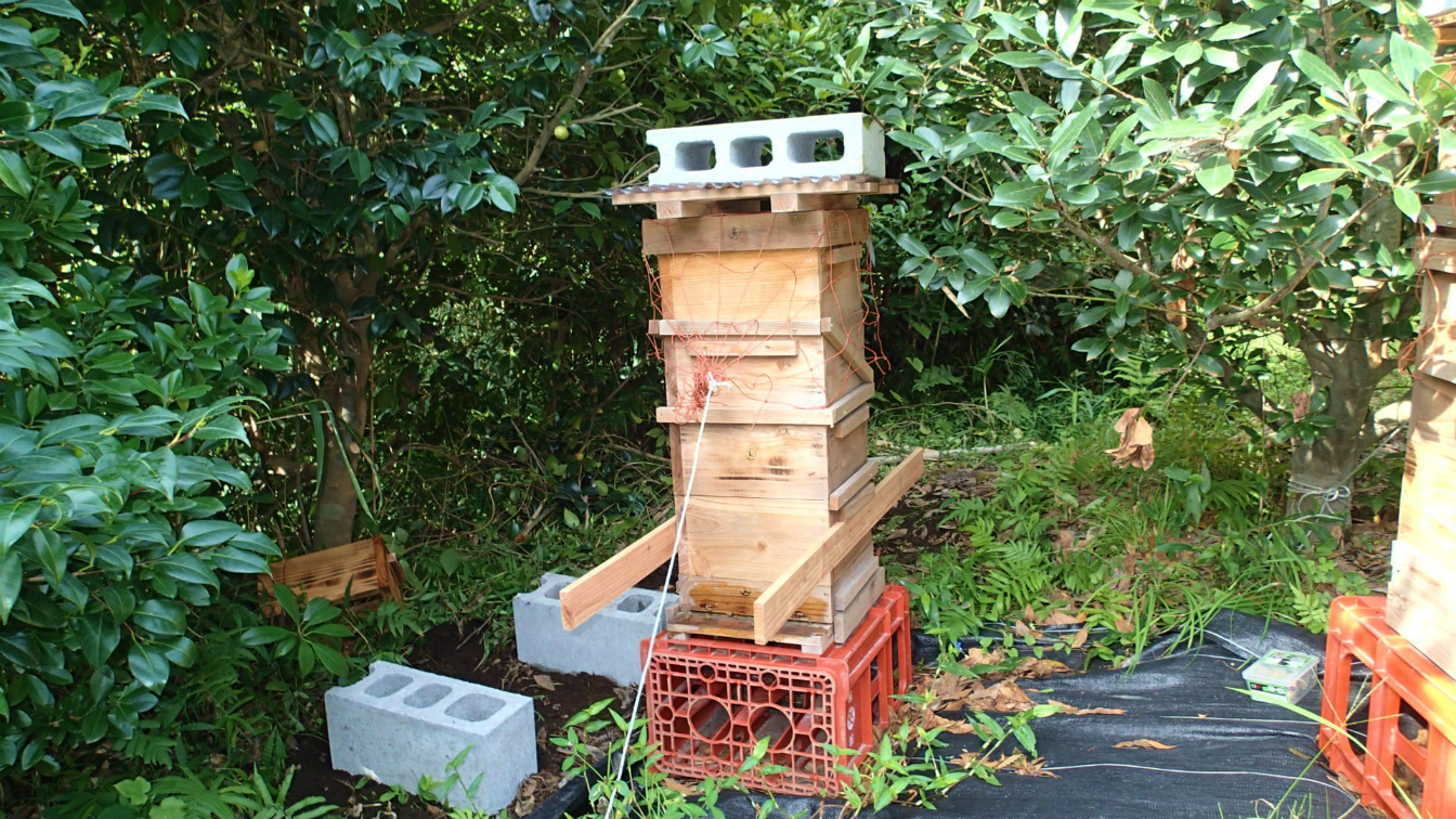 峠の一号、4段巣箱、5段目の継箱を本日新たな方法で実行しました。