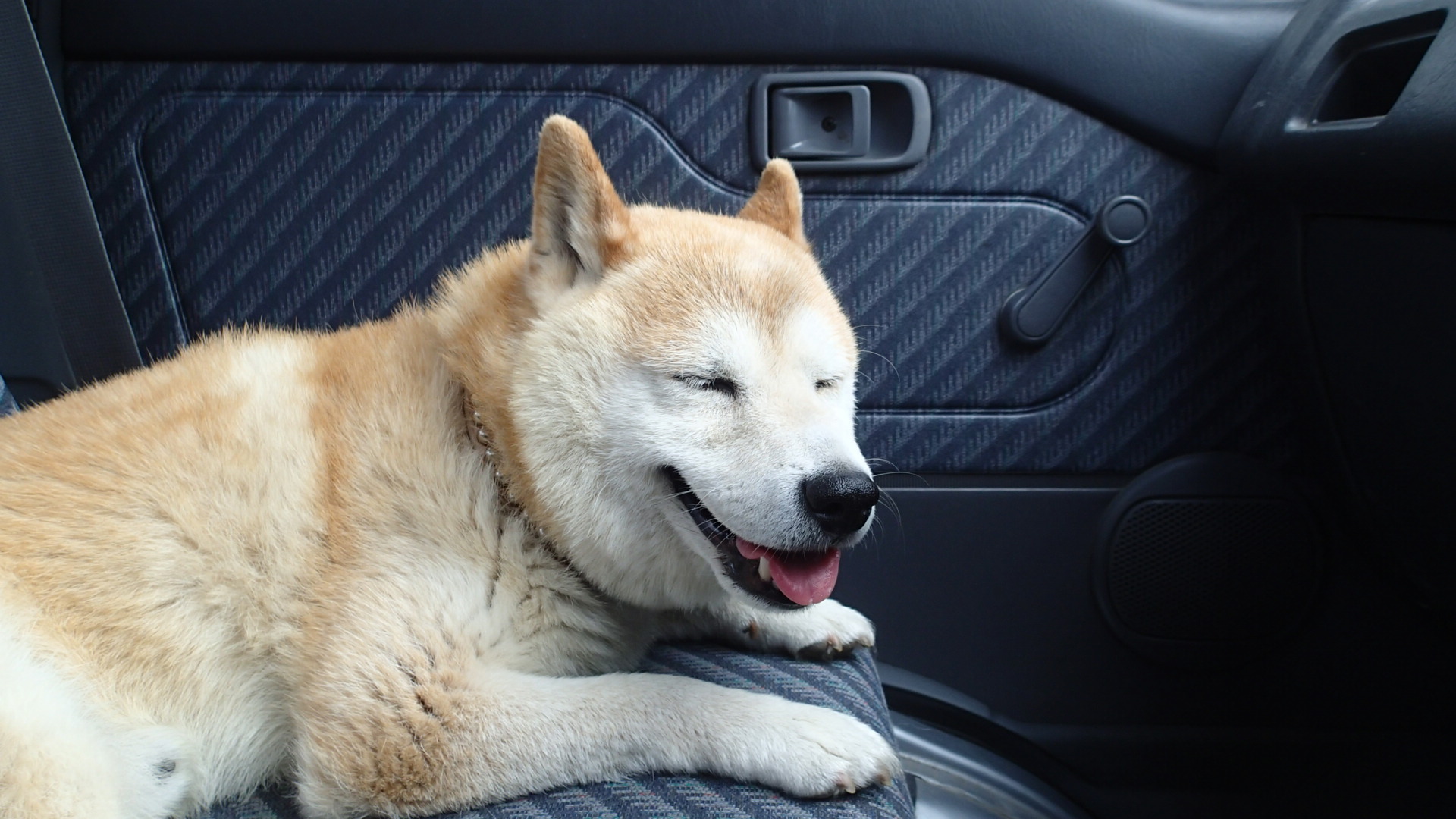 先日、おじさんの蜂場点検につきあってドライブに行ってきましたが、そのときも、犬は座席に丸くなり、うとうとしていました。