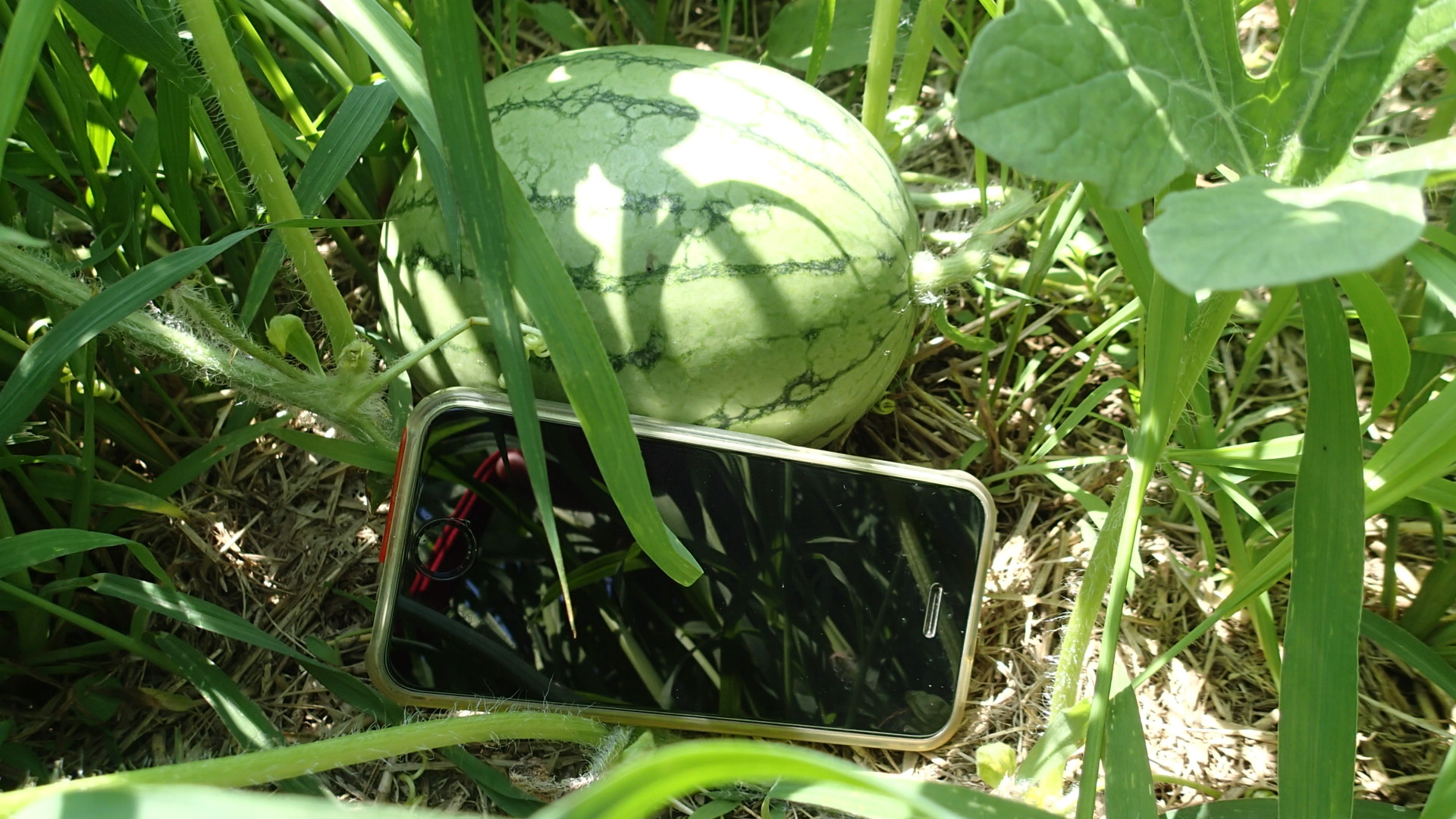 まだ大きくないですが、小玉西瓜ですから、