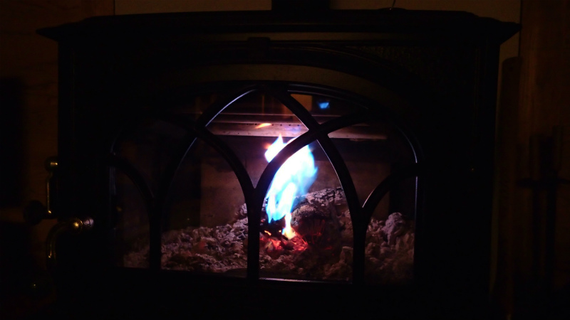 今日の薪はきれいに燃えます。