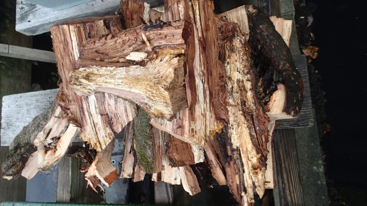 玉切りした原木を割ったら中が腐っていて蟻がいっぱい出てきた。なんてのもあります。