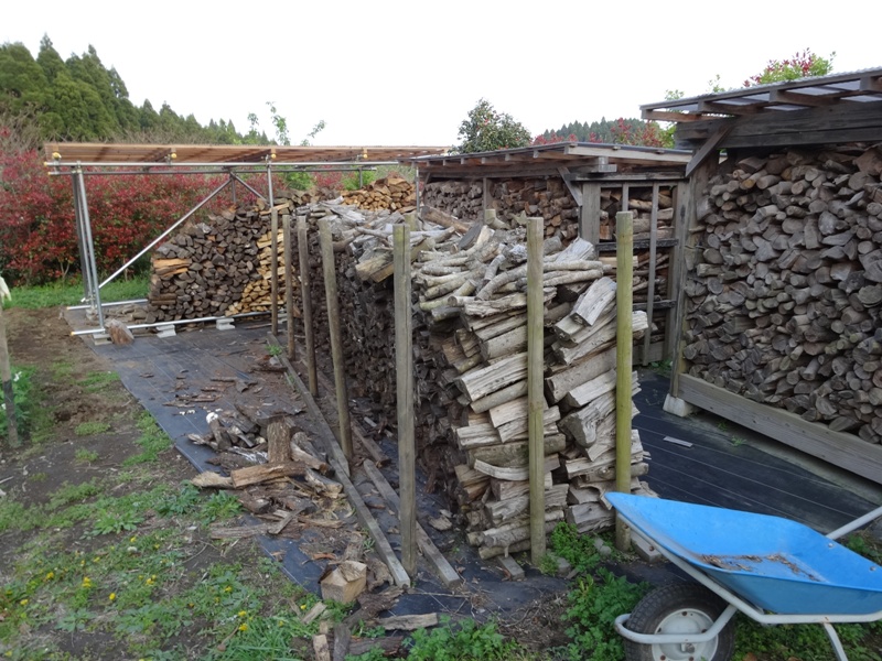 3号薪小屋に野積みになっていた薪の移動が始まりました。